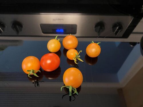 皆さんこんにちは。 明日は最高気温が36℃(97℉)の予報でまた暑くなるよーと騒がれているポートランドです。まーこの前程じゃないけどね。 さて、今日6時過ぎに畑に水あげに行ってちょっと収穫してきました!ようやく~~。 今年はオレンジ色のプチトマトを…